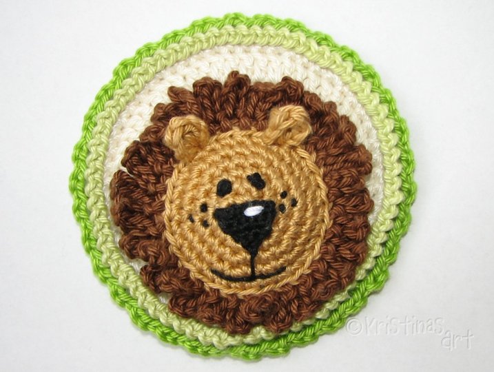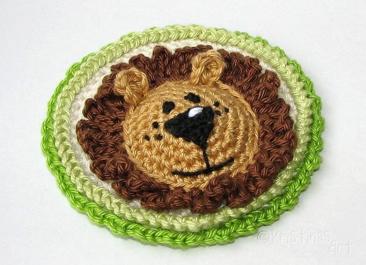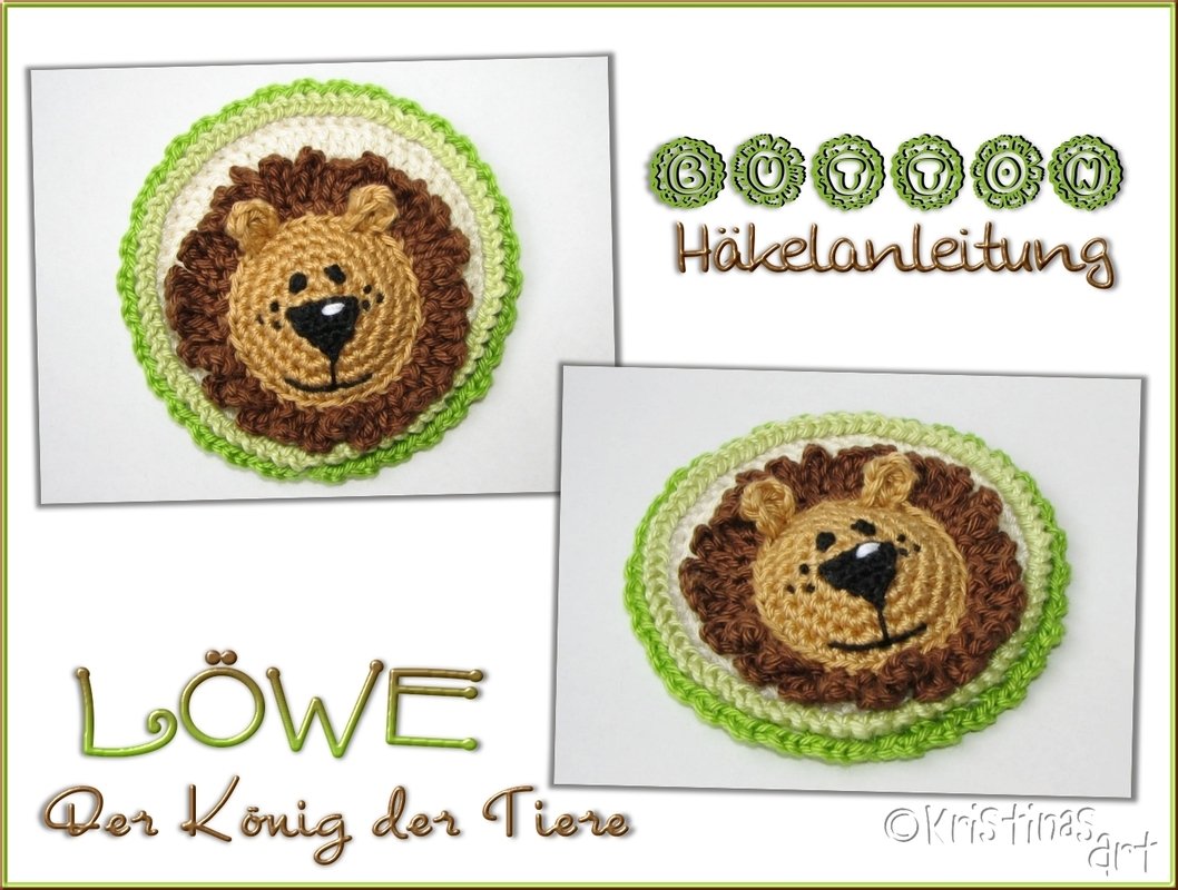 Bei Verwendung von Baumwollgarn mit einer Lauflänge von 125m/50g und einer Häkelnadel Stärke 2 hat der Button einen Durchmesser von 8,5 cm