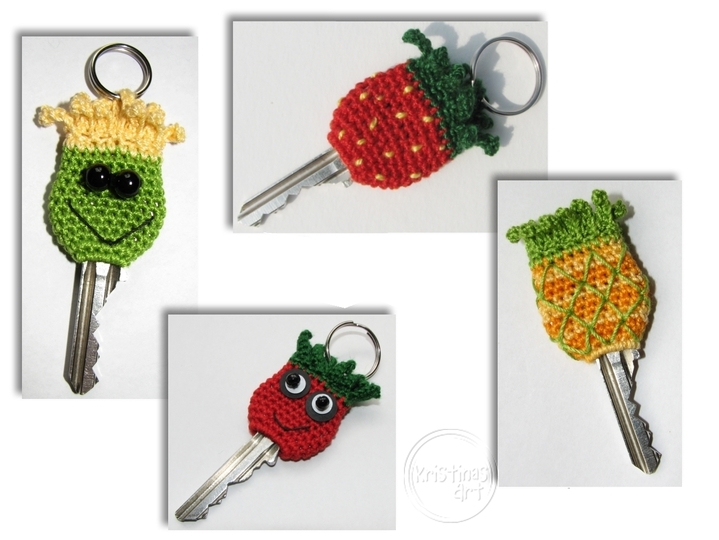 Dieses Grundmodell bietet zahlreiche Gestaltungsmöglichkeiten. Das Keycap wird nicht um den Schlüssel gehäkelt, sondern nach Fertigstellung über den Schlüssel gezogen.
