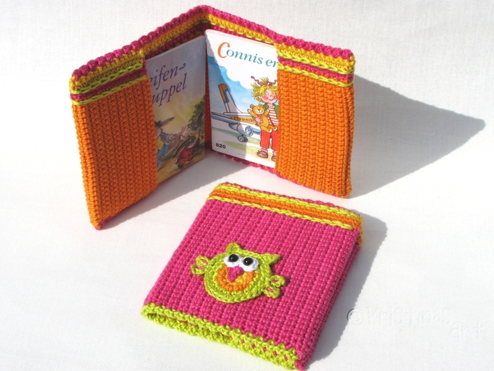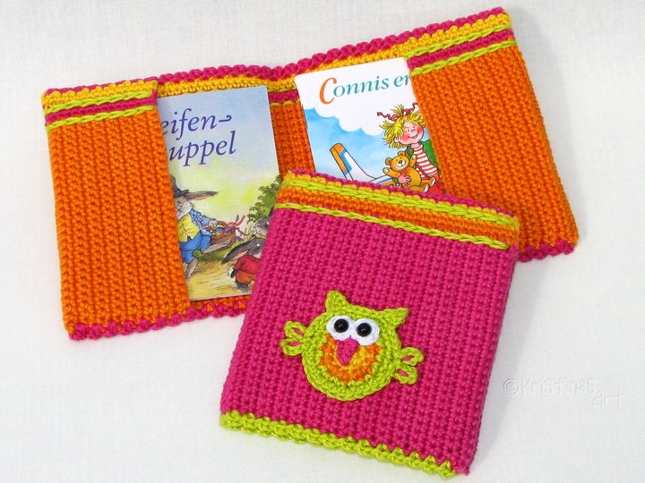 Mit der detailliert bebilderten Anleitung ist es ganz einfach eine Hülle für die Minibücher und die Uhu-Applikation zu häkeln!