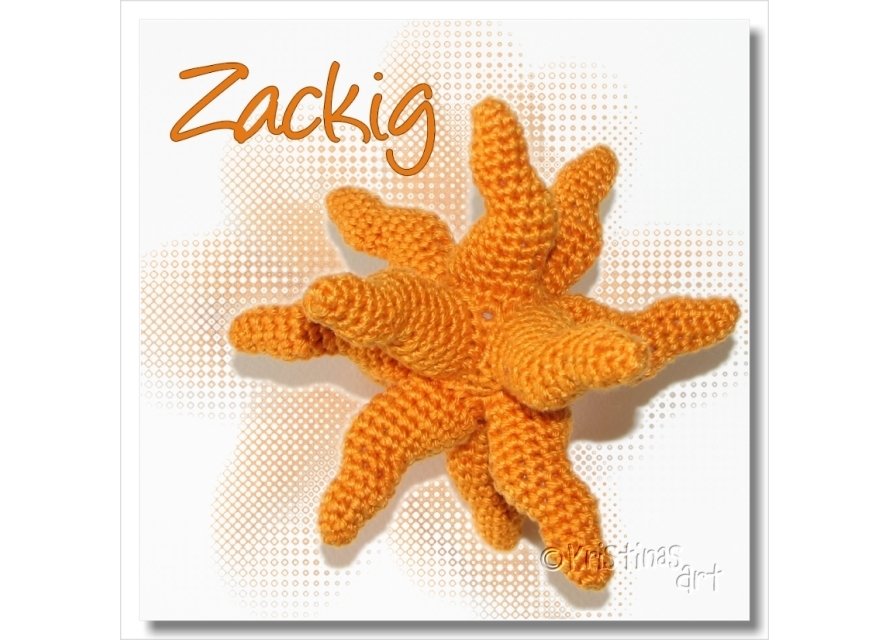 Bei Verwendung von Baumwollgarn mit einer Lauflänge von 125m/50g und einer Häkelnadel Stärke 2 erreicht Zackig einen Durchmesser von 14 cm.