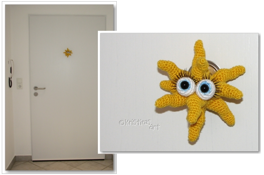 Materialbedarf: Baumwollgarn dazu eine Häkelnadel, Füllwatte, evtl. Halbperlen, Kleber, Kunstwimpern und Marker