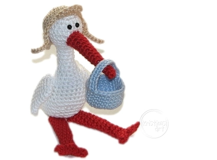 Eine Häkelanleitung für ein Mini-Baby, passend zum Storch, gibt es als Gratisanleitung zum Runterladen.