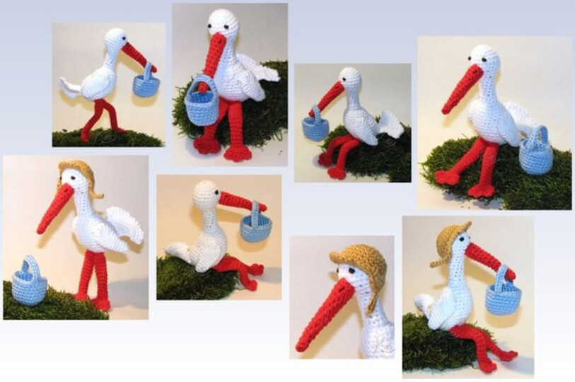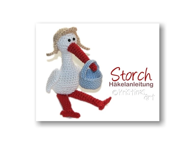 Das E-Book beinhaltet die detailliert bebilderte Anleitung zum Häkeln des Storches, der Fliegermütze sowie eines Körbchens.