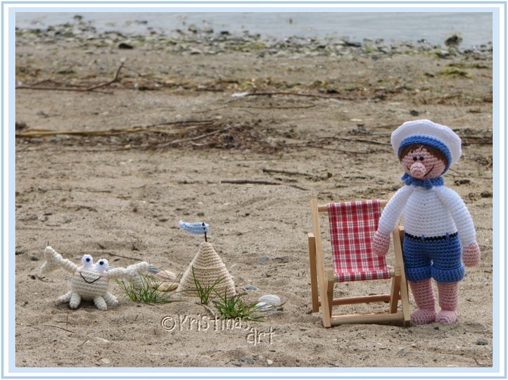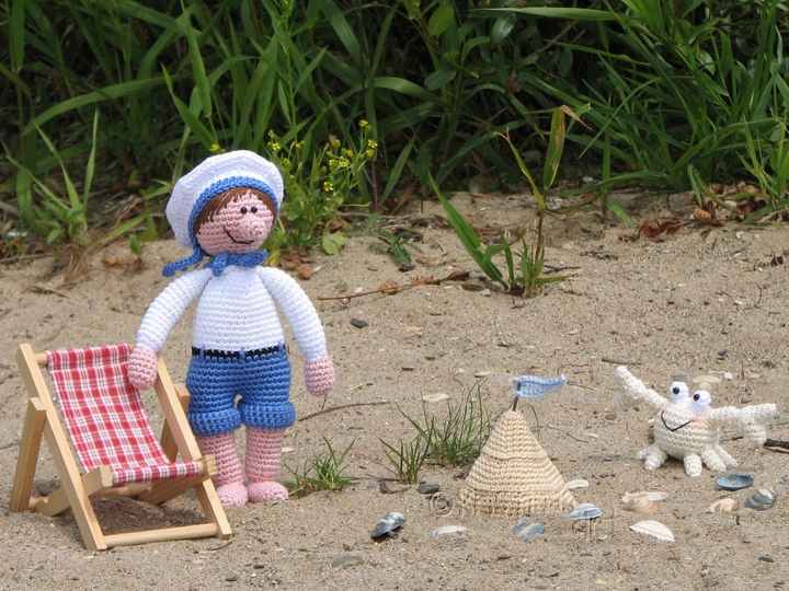 Das Ebook beinhaltet die Anleitung für den Matrosen mit Halstuch, Mütze, Sandburg und Krabbe.