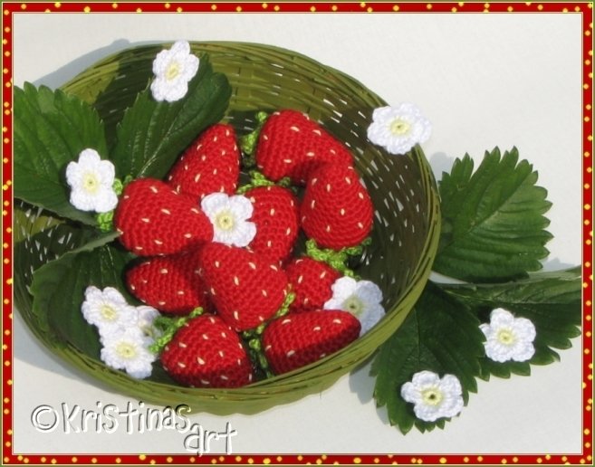 Häkel dir eine große Portion süßer Erdbeeren mit dieser detailliert bebilderten Anleitung. In diesem E-Book werden zwei Varianten für die Kelchblätter sowie das Häkeln einer Blüte erklärt.