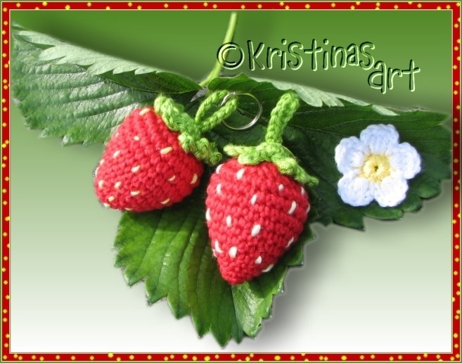 Bei Verwendung von Baumwollgarn mit einer Lauflänge von 125m/50g und einer Häkelnadel Stärke 2 wird die Frucht (ohne Blatt) ca. 4,5cm hoch.