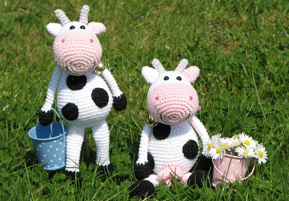 Mit dieser detailliert bebilderten Anleitung ist es ganz einfach glückliche Kühe zu häkeln. Die Faltanleitung für den Milchkarton ist auch in dem Ebook enthalten.