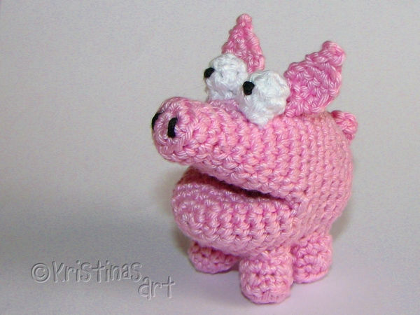 Bei Verwendung von Baumwollgarn mit einer Lauflänge von 125m/50g und einer Häkelnadel Stärke 2 wird das Schwein 6 cm lang