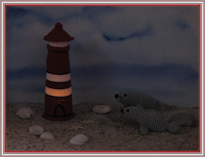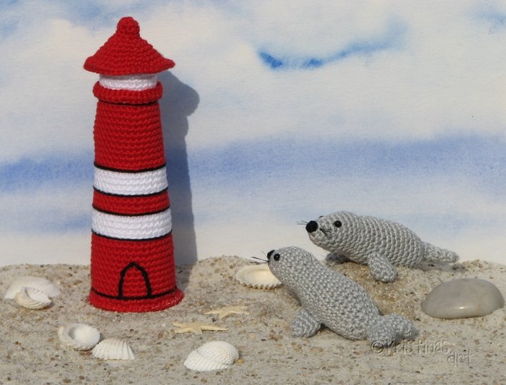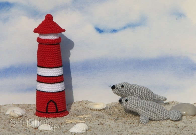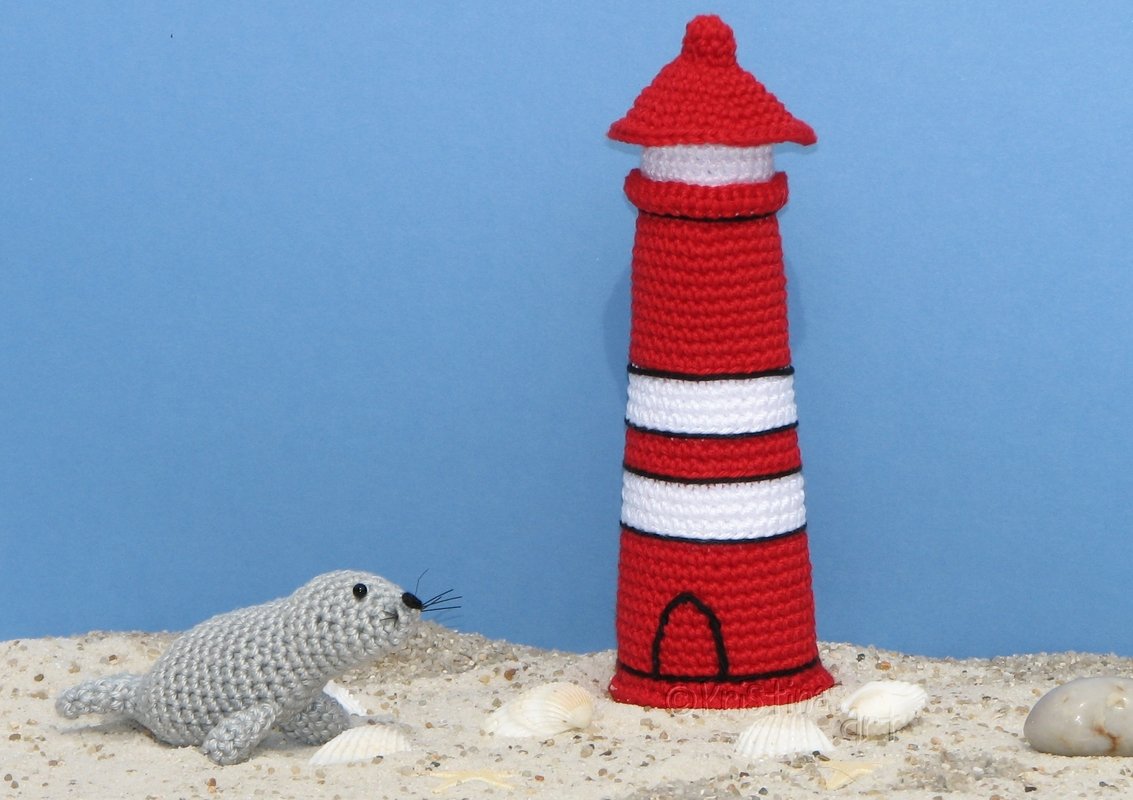 Mit dieser bebilderten Häkelanleitung kannst du den beleuchteten Leuchtturm und Seehund
