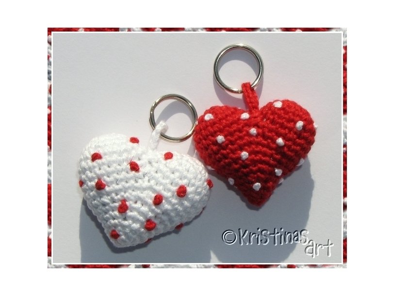 Bei Verwendung von Häkelgarn mit einer Lauflänge von 260m/50g und einer Häkelnadel Stärke 1,25 wird das Herz 3,5 cm breit.