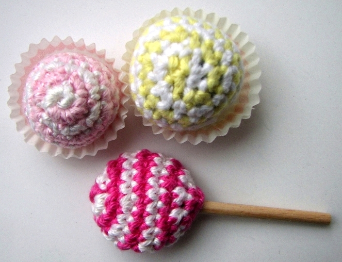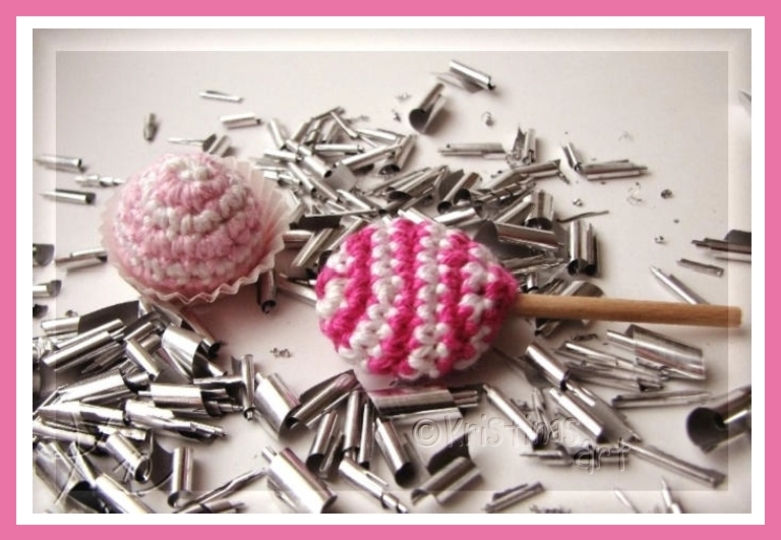 Bei Verwendung von Baumwollgarn mit einer Lauflänge von 125m/50g und einer Häkelnadel Stärke 2 erreicht die Kugel einen Durchmesser von 2,5 cm.