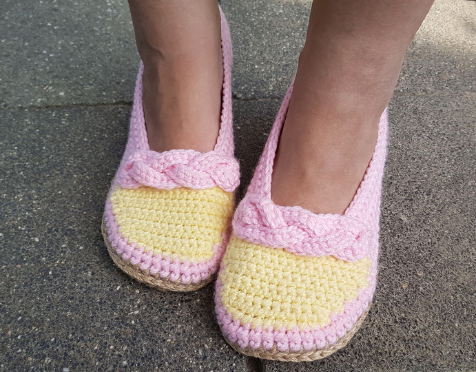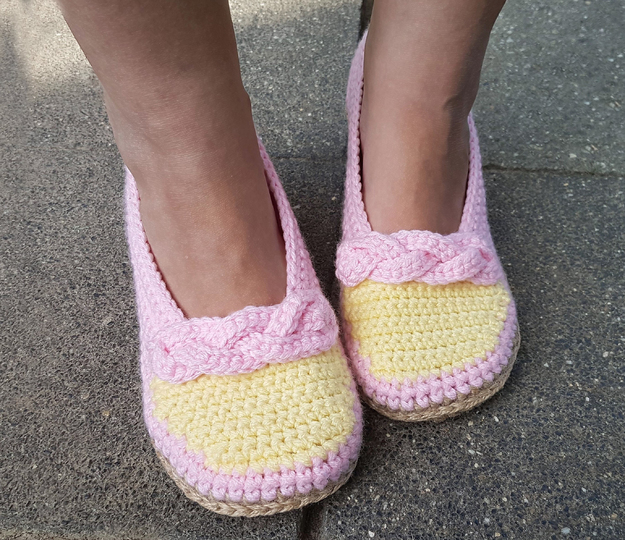 Nach dieser Anleitung können Sie super bequeme Schuhe häkeln. Mit Packschnur für draußen oder Wolle für zu Hause.