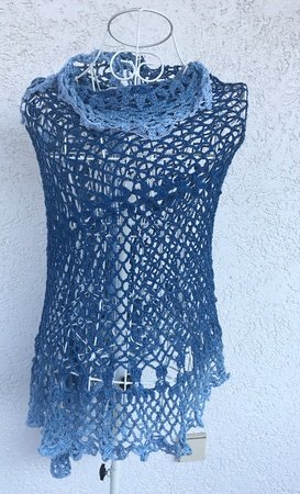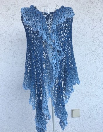 Das Tuch wird in Runden gehäkelt und formt sich nach und nach zu einem so länglichen Oval, dass es super als Stola, Schulterwärmer oder Schal getragen werden kann.