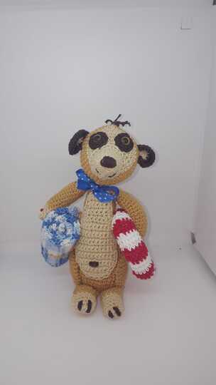 Dieser süße Erdbewohner hat die Nase voll von kalter Erde und schnappt sich sein Handtuch und sein Schwimmring und hüpft Richtung Strand Wasser und Urlaub.
