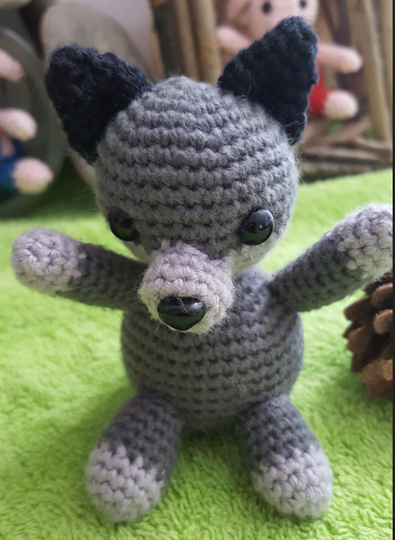 Hier findet Ihr die Anleitung für den bösen Wolf. Er ist ca. 10 cm groß und sieht gar nicht so böse aus wie er manchmal sein kann.