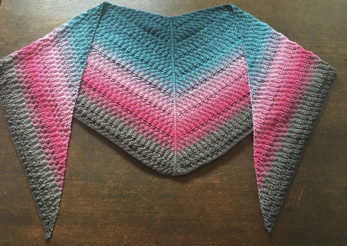 Das Tuch Slush-Ice wurde mit unserem Wollbobbel Genie in a Bottle gestrickt. Dafür haben wir 4 Fach Garn mit 800 Metern Lauflänge verwendet. Das ergibt eine Maße von ca. 180 cm und 47 cm Breite in der Mitte.