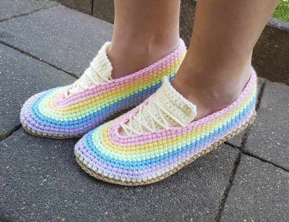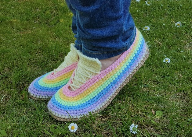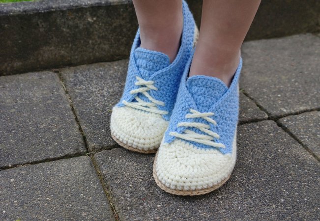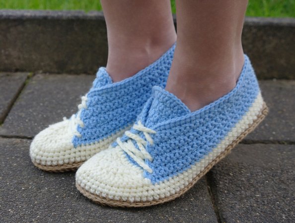 Nach dieser Anleitung können Sie super bequeme Schuhe häkeln. Mit Packschnur für draußen oder Wolle für zu Hause.