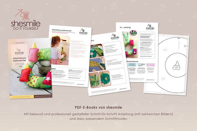 PDF-E-Books von shesmile: Diese leicht verständliche Schritt-für-Schritt-Anleitung mit vielen Fotos ist auch für Nähanfänger geeignet, denn die sehr ausführliche Fotoanleitungen begleitet dich bei jedem Schritt.