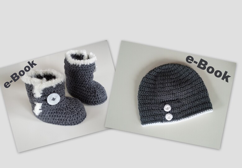 Dies ist eine Häkel-Anleitung für die auf dem Foto abgebildeten Booties sowie die Mütze nicht das fertige Produkt!!