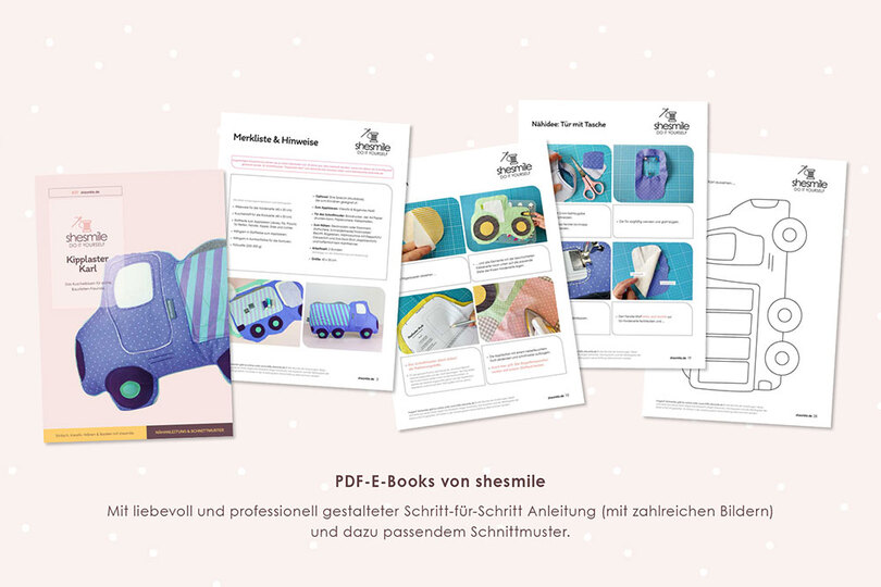 PDF-E-Books von shesmile: Diese leicht verständliche Schritt-für-Schritt-Anleitung mit vielen Fotos ist auch für Nähanfänger geeignet, denn die sehr ausführliche Fotoanleitung begleitet dich bei jedem Schritt.