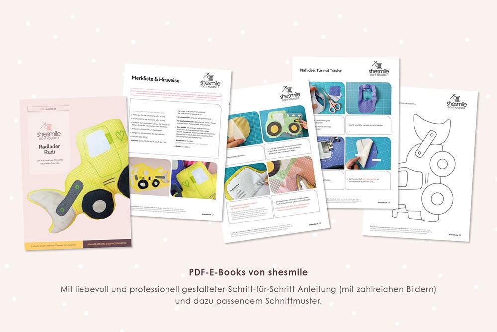 PDF-E-Books von shesmile: Diese leicht verständliche Schritt-für-Schritt-Anleitung mit vielen Fotos ist auch für Nähanfänger geeignet, denn die sehr ausführliche Fotoanleitung begleitet dich bei jedem Schritt.