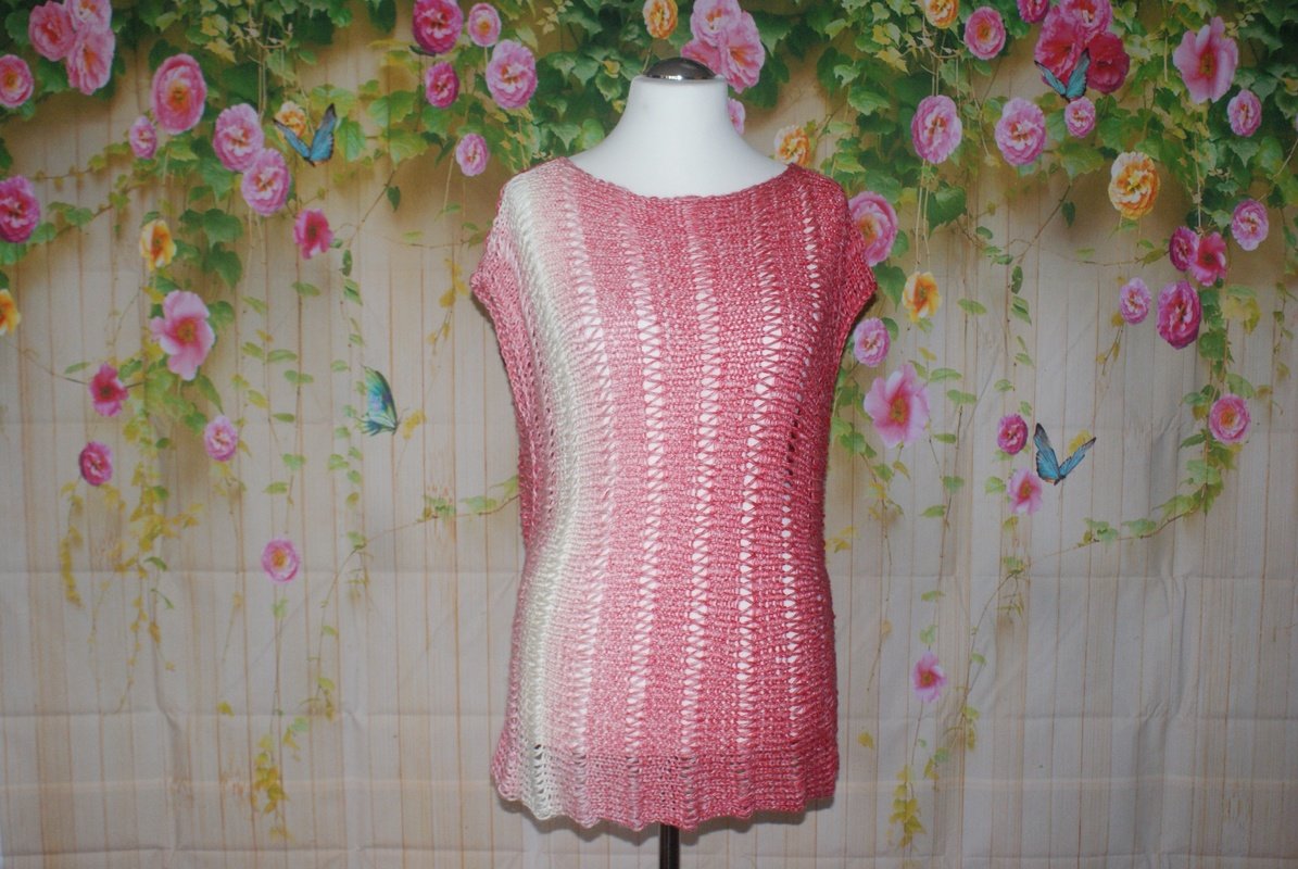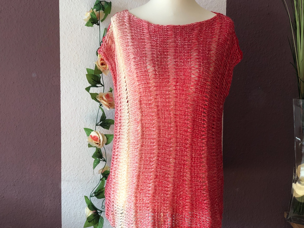 Das Top wird in zwei Teilen quer gestrickt. Die Reihen mit den langgezogenen Maschen machen dein neues Top noch sommerlicher! Die Anleitung kann ohne weiteres an alle Größen angepasst werden und ist noch dazu kinderleicht nachzuarbeiten und ausdrücklich für Anfänger geeignet.