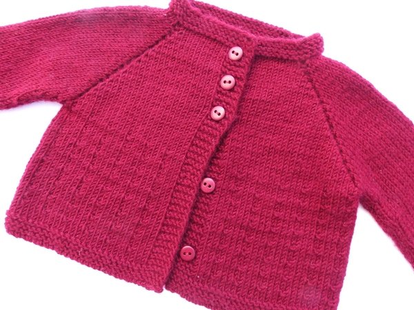 Dieses Jäckchen wird von oben nach unten an einem Stück und ohne Nähe gestrickt.