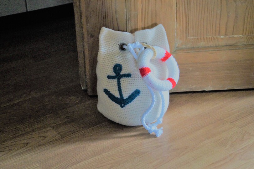 hier könnt Ihr eine Maritime Deko ,aber auch ein nützliches Utensil nachhäkeln....auf die Idee brachte mich meine Tochter,deren Badezimmer sehr maritim eingerichtet ist und sie die handelsüblichen Türstopper fad fand