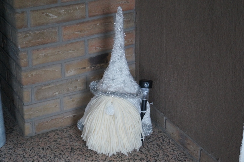 45 cm großer Wichtel für Außen aus wetterbestädnigem Bindfaden , leicht bis mittelschwere Anleitung