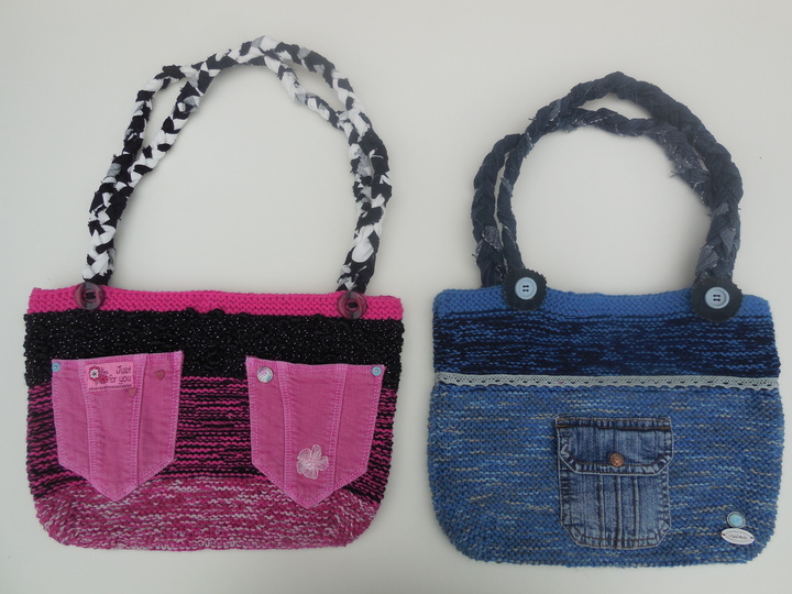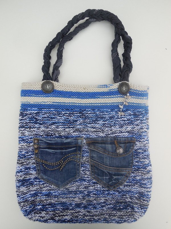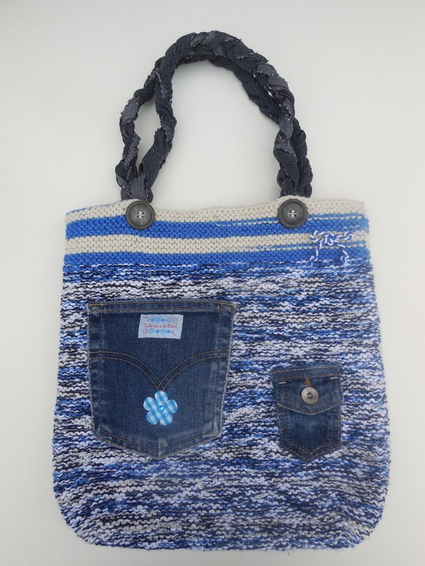 Da ich schon seit längerem keine ausgedienten Jeans mehr wegwerfe und sich mittlerweile Unmengen von Strumpfwolle/Strumpfwollreste bei mir angesammelt haben, ist diese Anleitung für eine wunderschöne Upcyclingtasche entstanden.