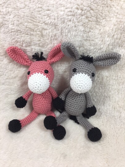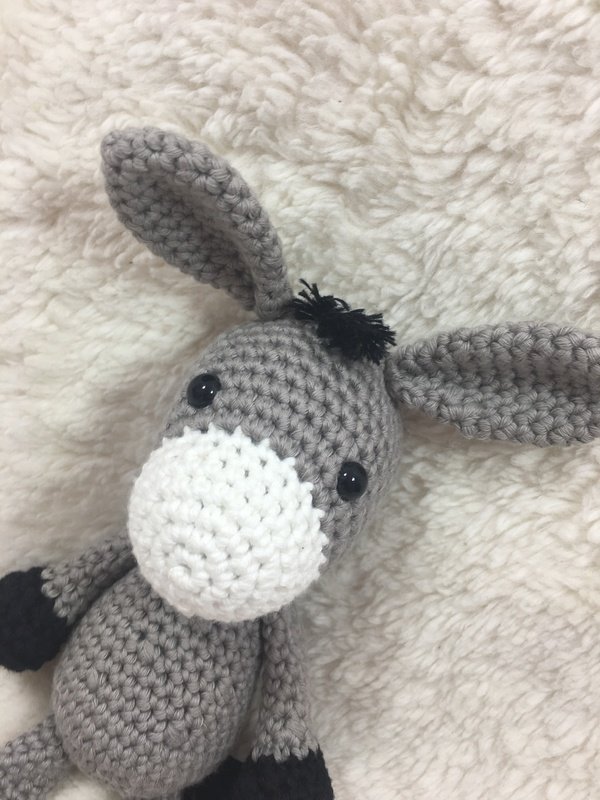 Mit meiner detaillierten Anleitung könnt Ihr Euch euer eigenes Eselchen in Euren Wünschfarben häkeln.