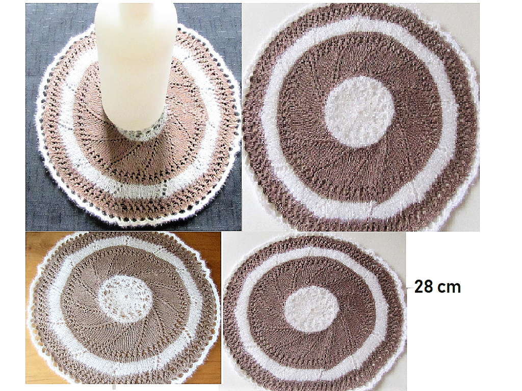 (rechte und linke Maschen, Umschläge, Maschen überzogen und rechts zusammen stricken)