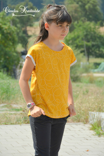 Ein leicht Tailliert und locker fallendes Sommershirt für Mädchen. Es hat keine eingesetzten Ärmel und ist somit ganz fix genäht.