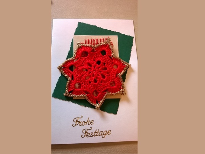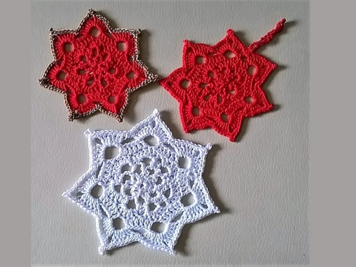 Je nach Garn- und Nadelstärke werden die Sterne unterschiedlich groß. Die abgebildeten sind zwischen 6 und 10 cm Durchmesser groß.