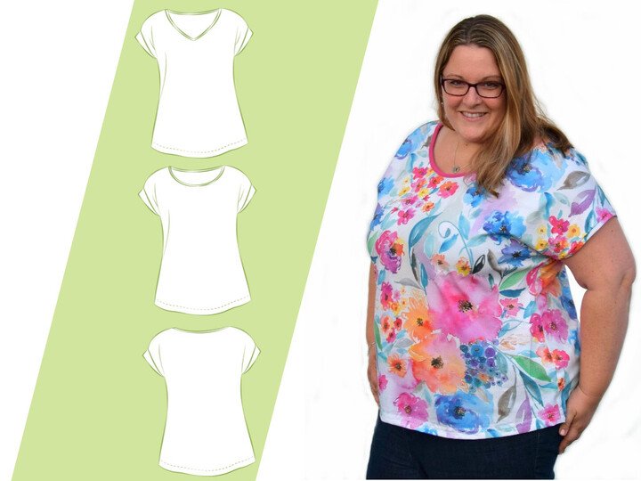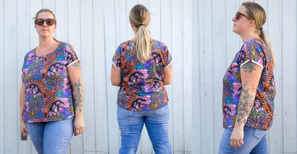 Ein leicht Tailliert und locker fallendes Sommershirt für Damen. Es hat keine eingesetzten Ärmel und ist somit ganz fix genäht.
