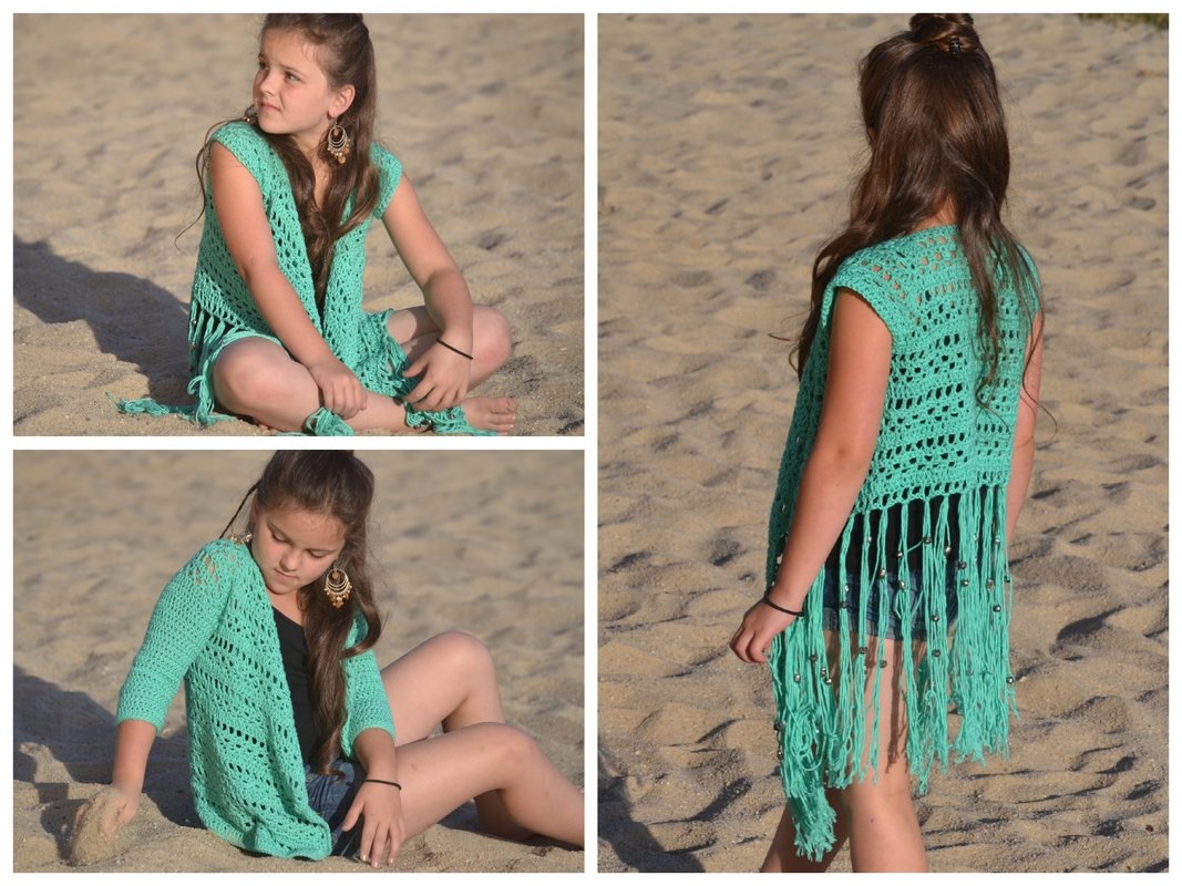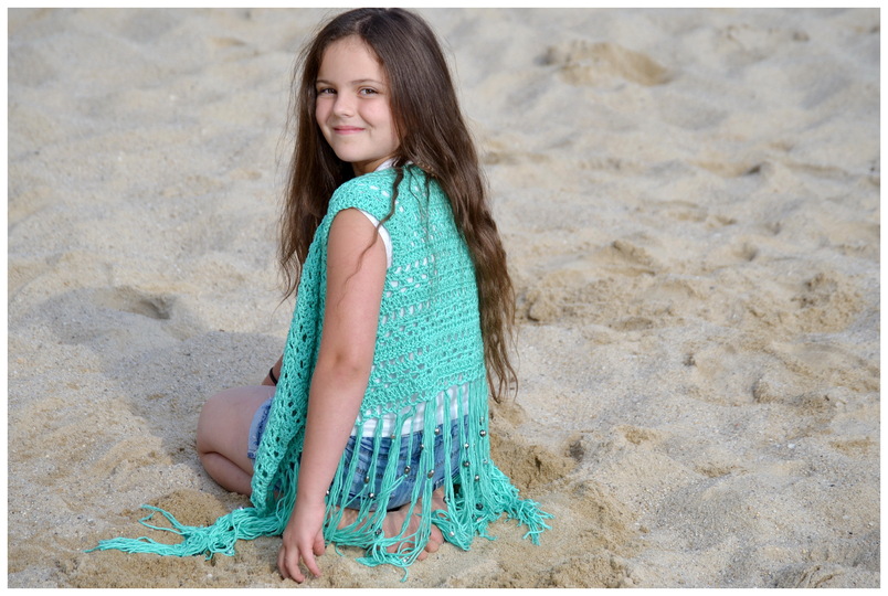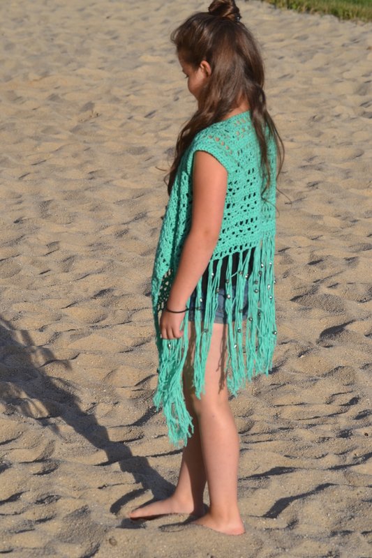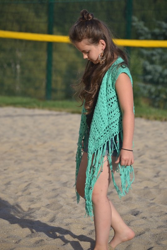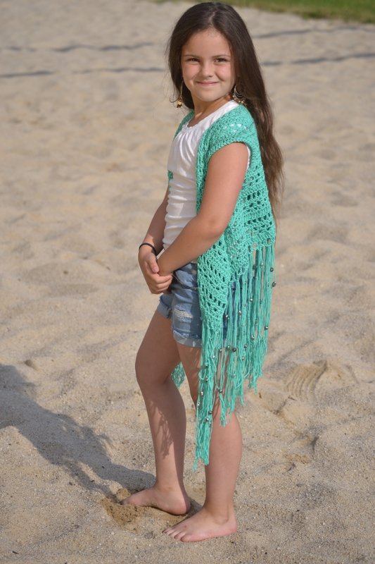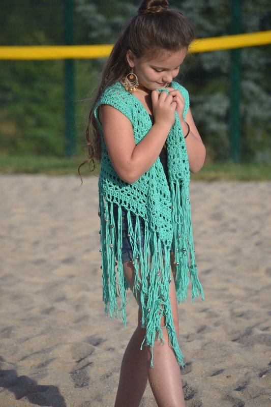 Ich habe sie hier in zwei verschiedenen Varianten gearbeitet. Die erste Variante ist kürzer geschnitten, mit langen Fransen und Perlen und passt perfekt zum Sommer.