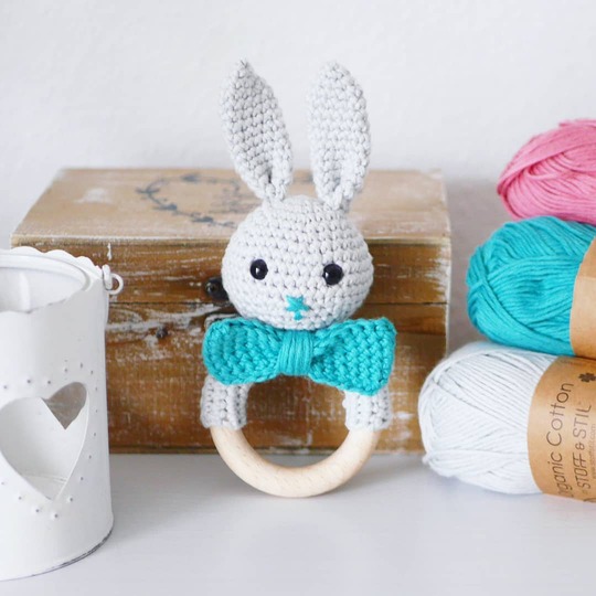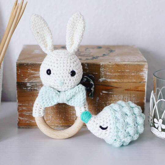 Die Hasenrassel bzw. den Rasselgreifling kannst du mit Hilfe der Anleitung selbst häkeln, sie sind für kleine Babys ideal zum Spielen, Rasseln und Greifen. Die Anleitung ist sehr ausführlich und die vielen Bilder helfen dir bei der Umsetzung deines Häschens. Bei Fragen, wende dich gerne an mich über mein Instagram- oder Facebook-Profil.
