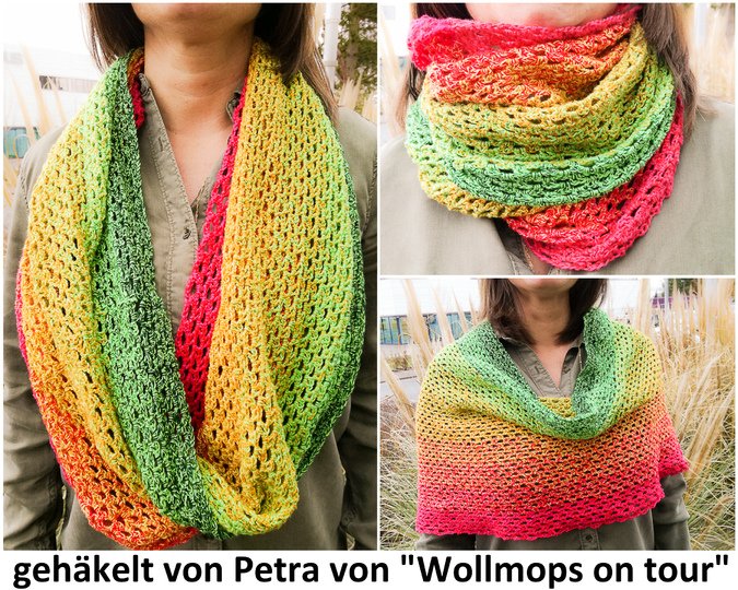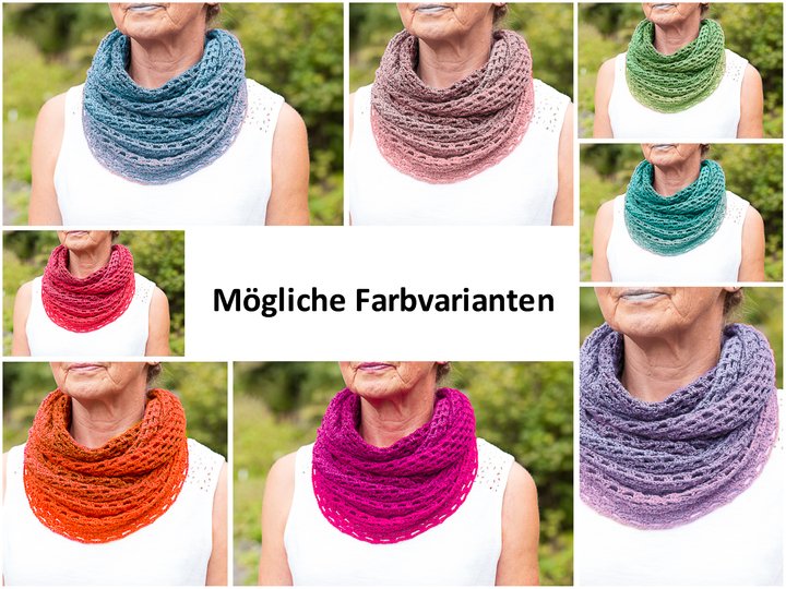 Wie immer ändert sich der Look total, je nachdem welches Garn in welcher Farbe du nimmst. Mit einem tollen Farbverlauf zauberst du einen fröhlich-bunten Loop für alle Jahreszeiten und mit einem kuscheligen Merinogarn wird dein Loop besonders warm und ist absolut herbst- und wintertauglich.