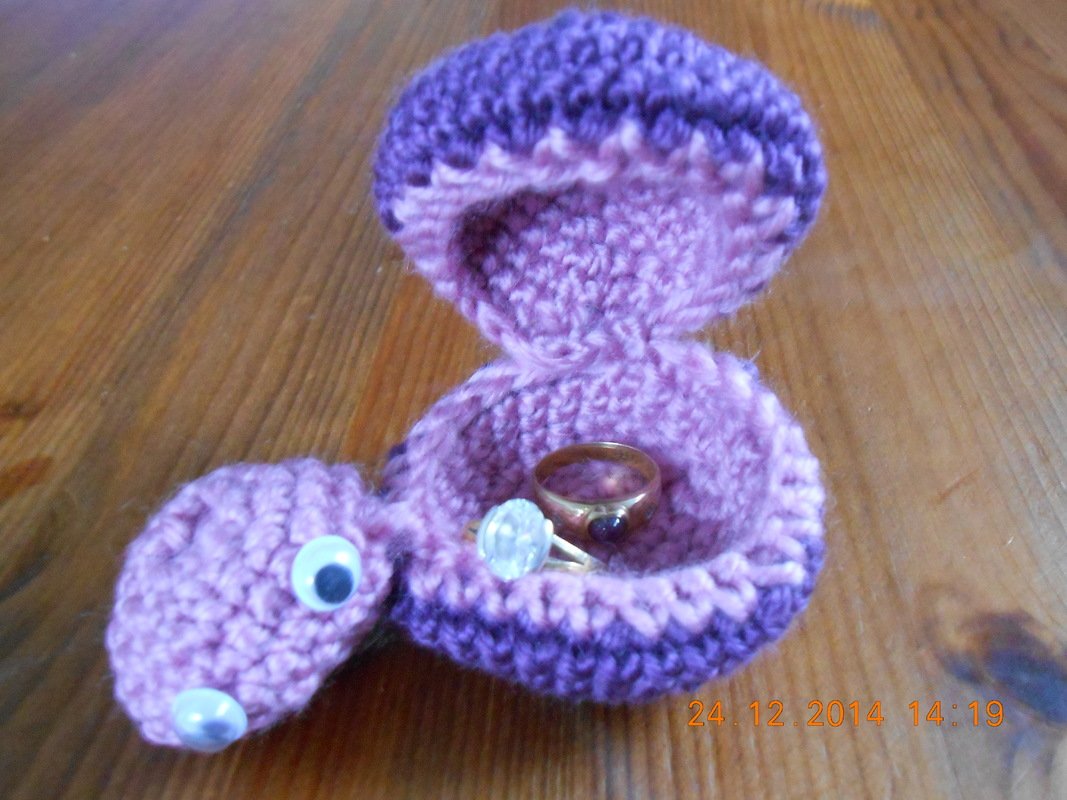 hier biete ich eine Häkelanleitung, wonach die Muschel gehäkelt werden kann.