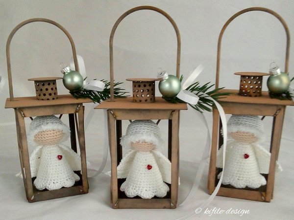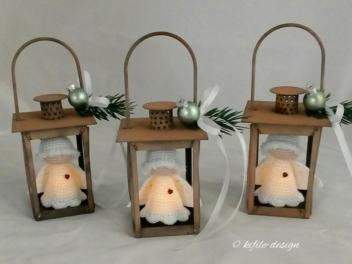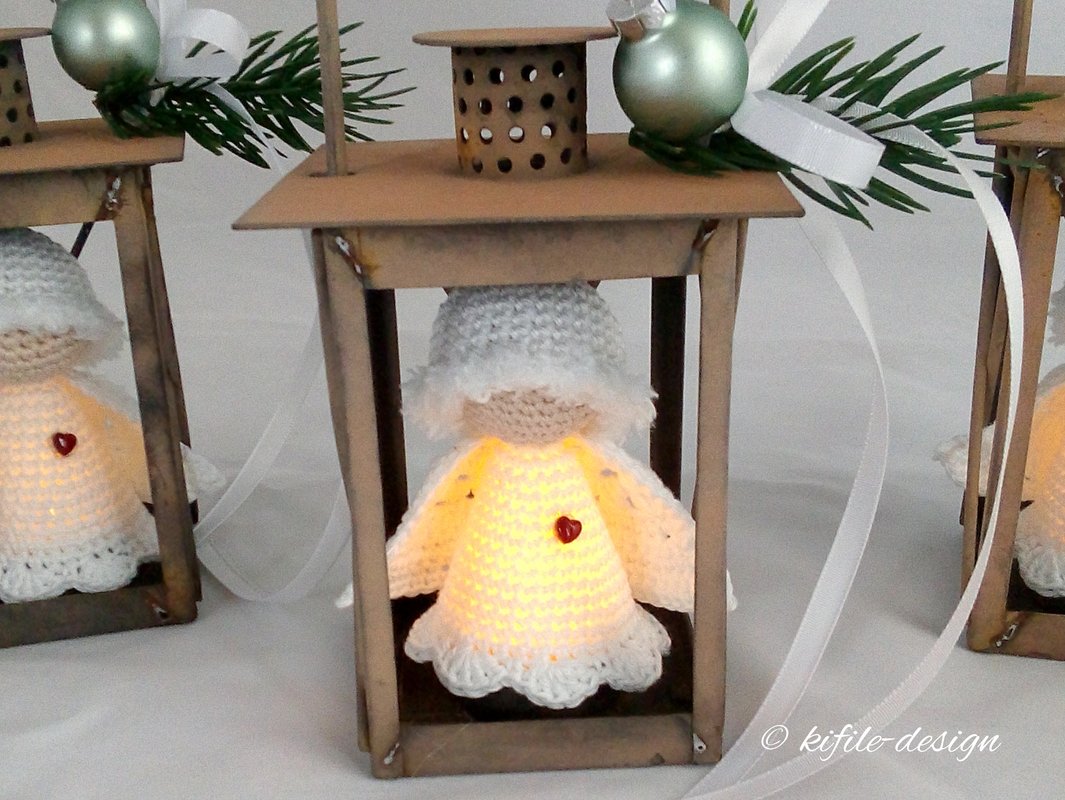 hoch. Es wäre angebracht gewesen, die Größe des fertigen Engels anzugeben...Jetzt behäkle ich die Laterne mit einer anderen Figur und der Engel gibt auch ohne Laterne eine gute Figur ab....