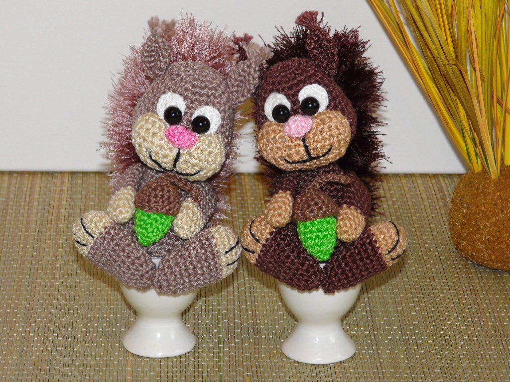 Dann habe ich für euch eine tolle Häkelanleitung für Eichhörnchen Eierwärmer :)
