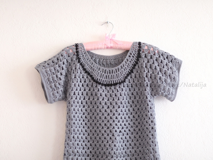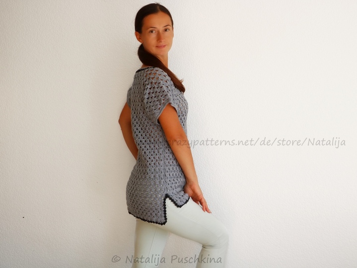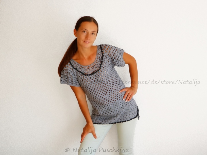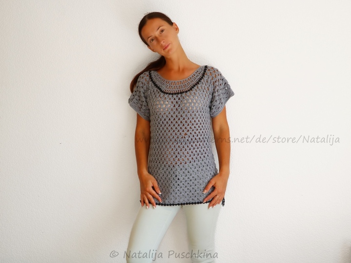 Diese schöne Pullover kann man über verschiedene Kleidungsstücke überziehen: über Kleid, Top, Bluse, Shirt, T-Shirt und andere. Im Sommer perfekt einfach so zu tragen, mit Shorts oder Rock.