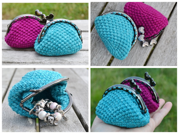 Ich liebe kleine Portmonees und kleine Täschchen und wollte sie schon immer mal selbst ausprobieren. Also habe ich den Portomoneeverschluss Linda bestellt, passendes Garn herausgesucht und herumprobiert bis diese schönen kleinen Teilchen herausgekommen sind.