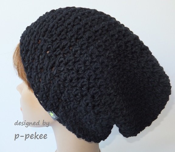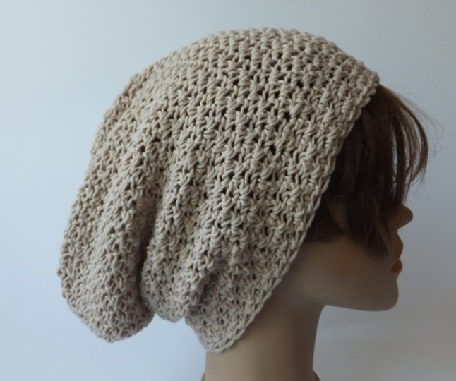 Gehäkelte Beanie / Longbeanie mit schönem Muster. Das Muster wirkt wie ein Perlmuster, ist aber gehäkelt.