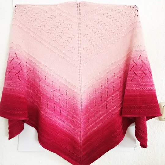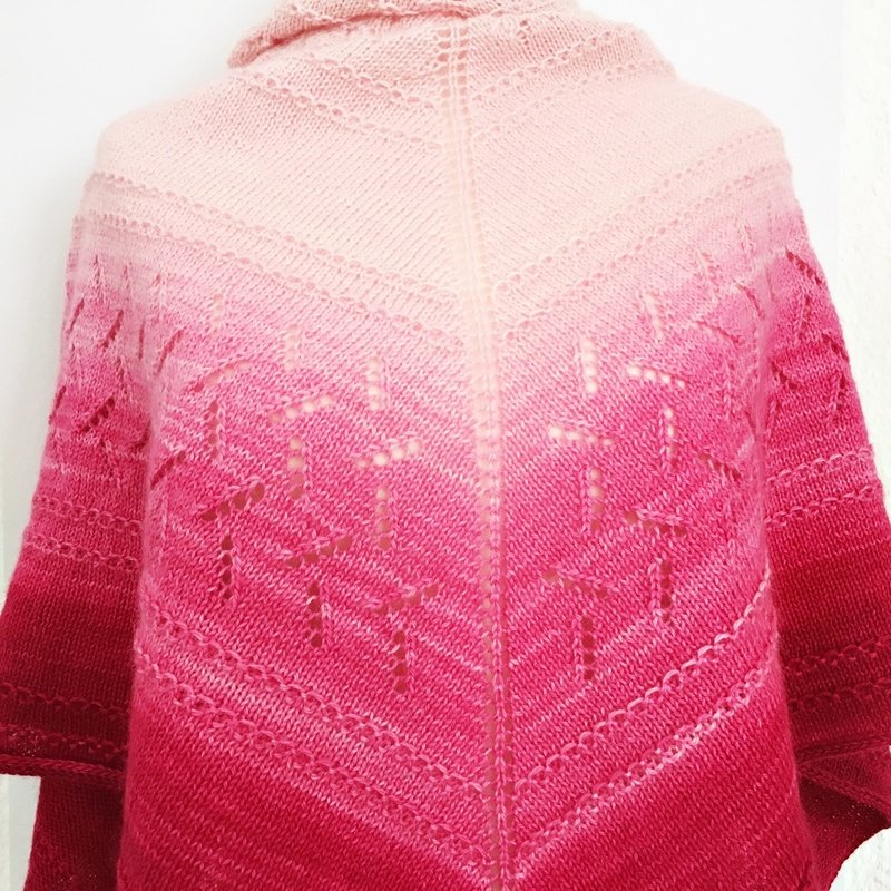 Die ersten kühlen Sommerabende sind da. Da darf ein leichtes Tuch nicht fehlen. Es wird aus nur einem Knäuel gestrickt und hat eine Größe von 160 cm (obere Kante) x 70 cm (Kante/Spitze).