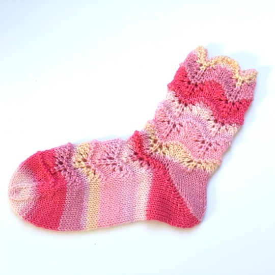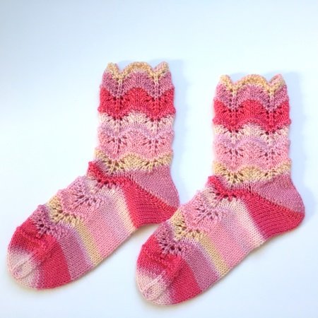 Welches kleine Mädchen möchte nicht gerne eine Prinzessin sein? Mit diesen niedlichen Söckchen ist der erste Schritt getan. Unterschiedliche rosa Farbtöne in Kombination mit einem kleinen Lochmuster ergeben den perfekten Look. Der Zackenrand entsteht von alleine durch das Muster. Das können auch Anfänger.