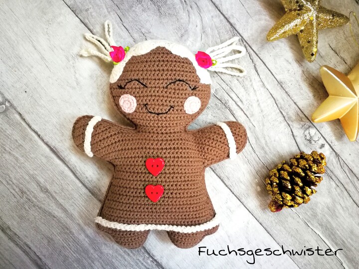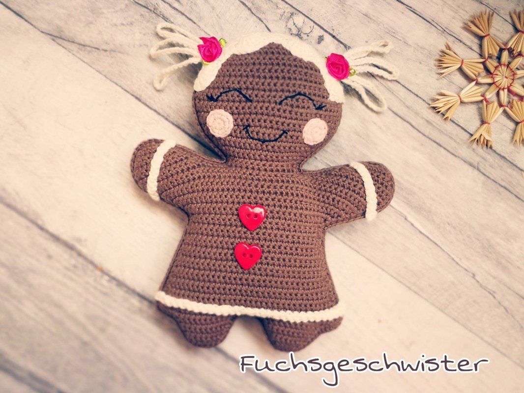 Um die Pfefferkuchen Mädels zu häkeln benötigst du: