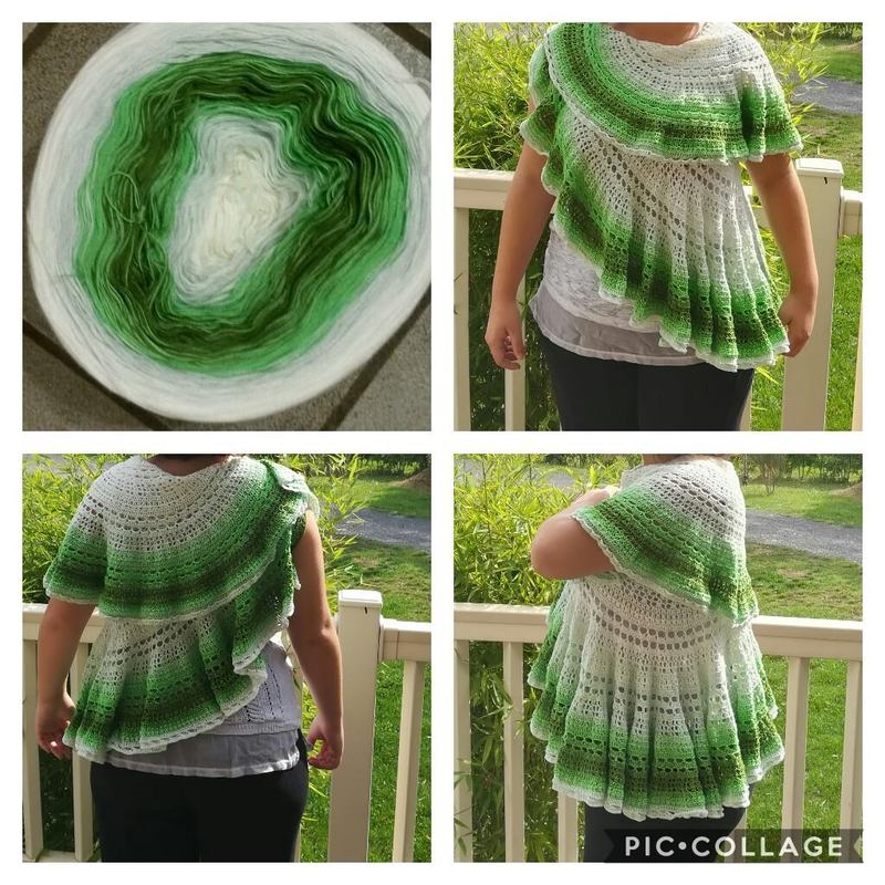 Jetzt wo das Wetter wieder kälter wird, braucht man das gewisse Etwas im Schrank. Die Kreisjacke der besonderen Art. Die Jacke kann in jeder beliegen Größe gearbeitet werden. Durch ihren außergewöhnlichen Schnitt, ist sie ein absoluter Hingucker. Anders wie bei anderen Kreisjacken, arbeiten wir nicht vom Rücken aus. Dadurch entsteht ein schöner großer Kragen, der locker über die Schulter fällt.