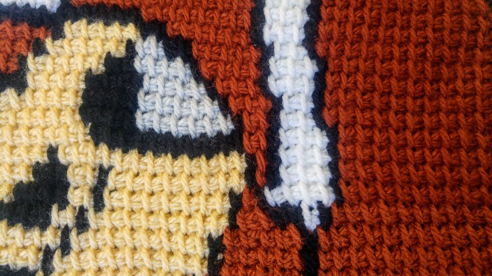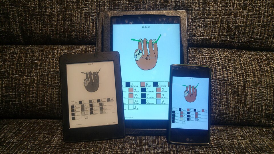 Die Anleitung enthält zusätzlich eine PDF Datei mit der genau abgezählten Maschenanzahl jeder Farbe pro Reihe. Diese Datei kann auf Tablet und / oder E- Book Reader geladen werden um auch unterwegs bequem häkeln zu können. :)