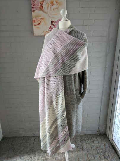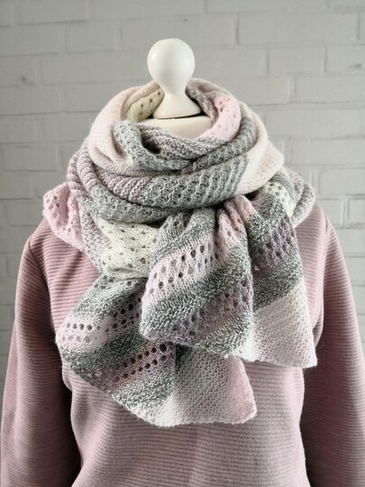 Diese Stola ist durch die verschiedenen Ab- und Zunahmen, Strickrichtungen und Muster eher für erfahrene Strickerinnen geeignet.